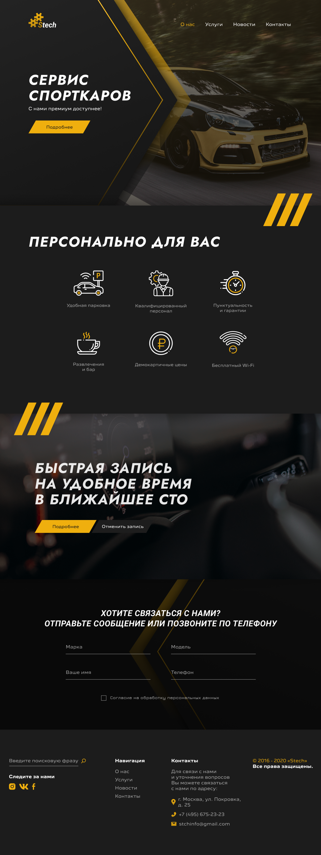 Легко считываемый лендинг, где на главной странице будет целевое действие — записаться на СТО